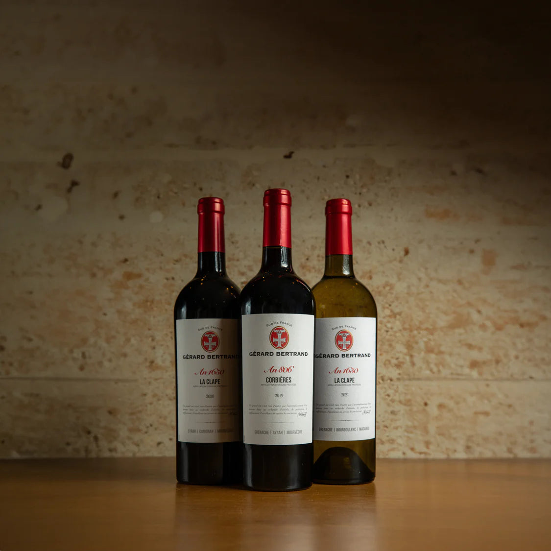 • 3 bouteilles AOP  : La Clape rouge, Corbières, La Clape Blanc
